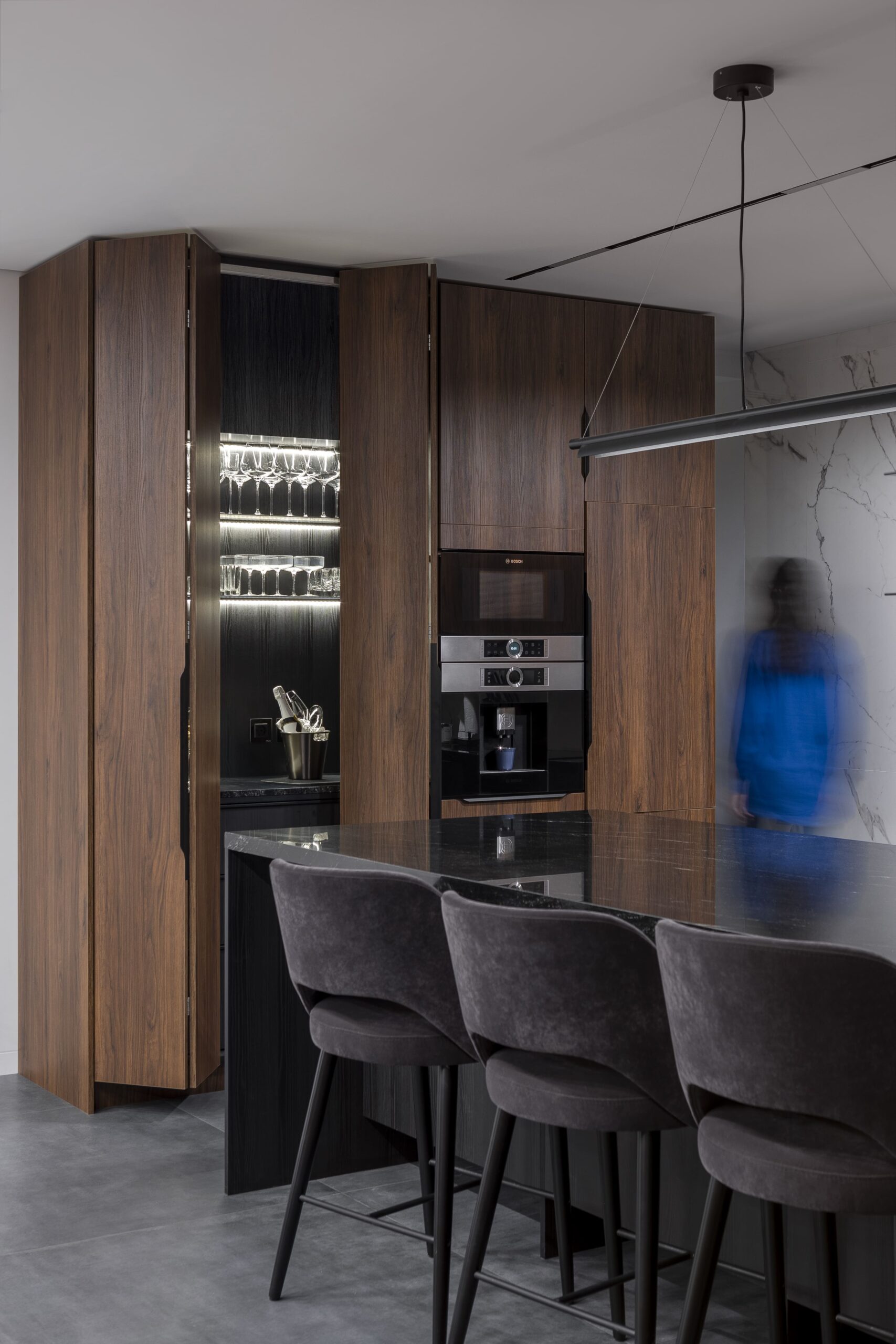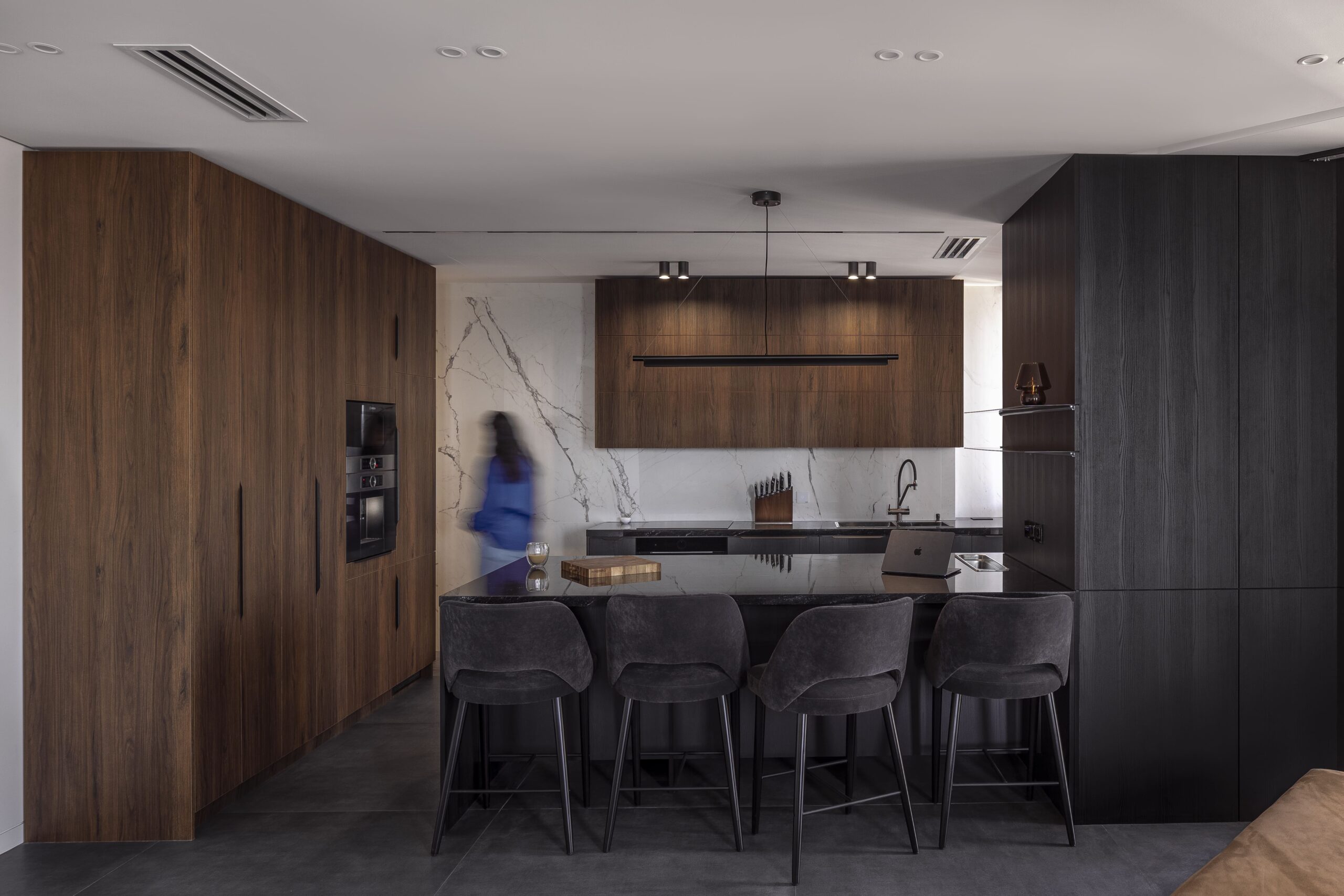 The design sinks the main social areas—including a large kitchen, living