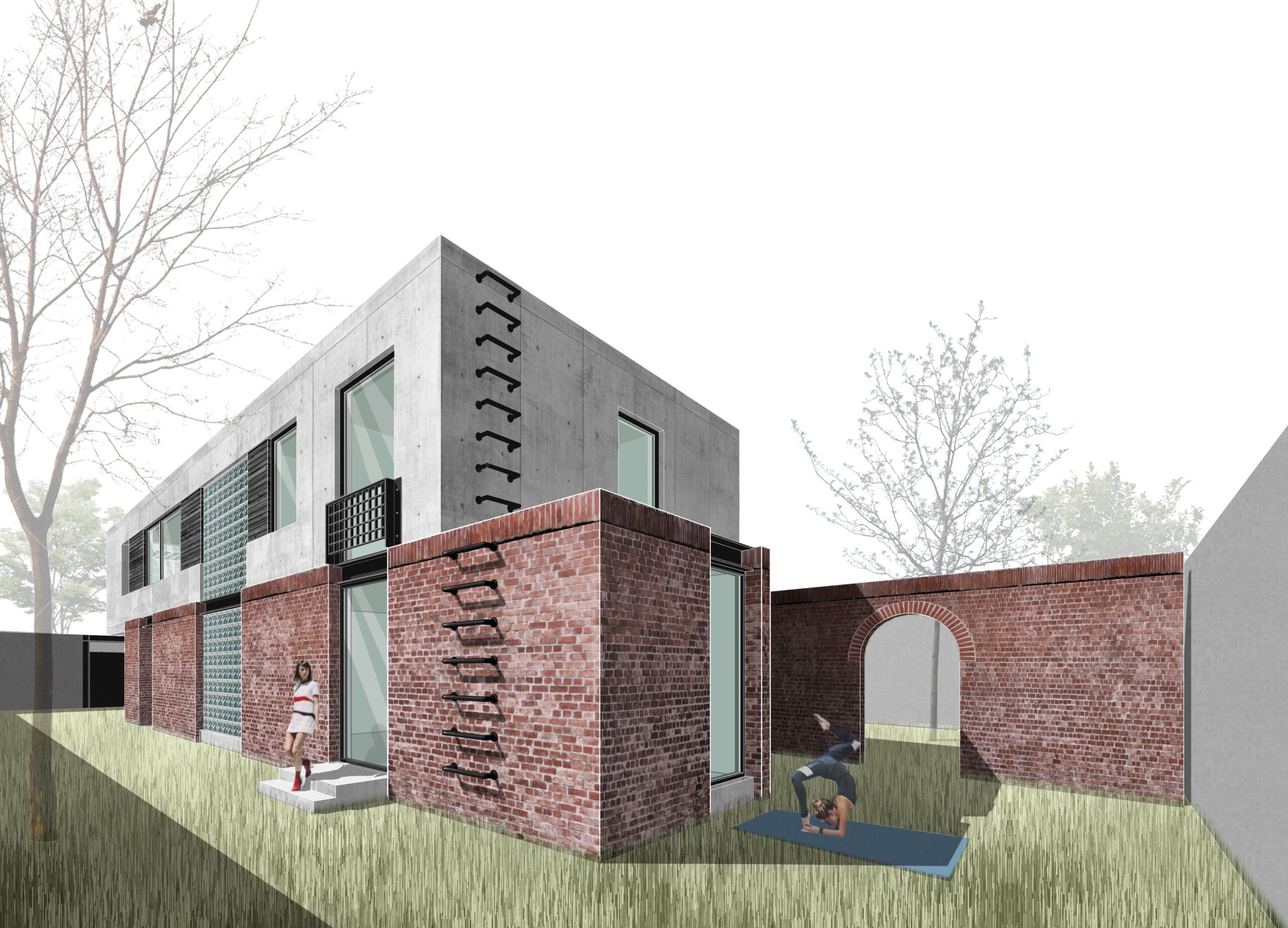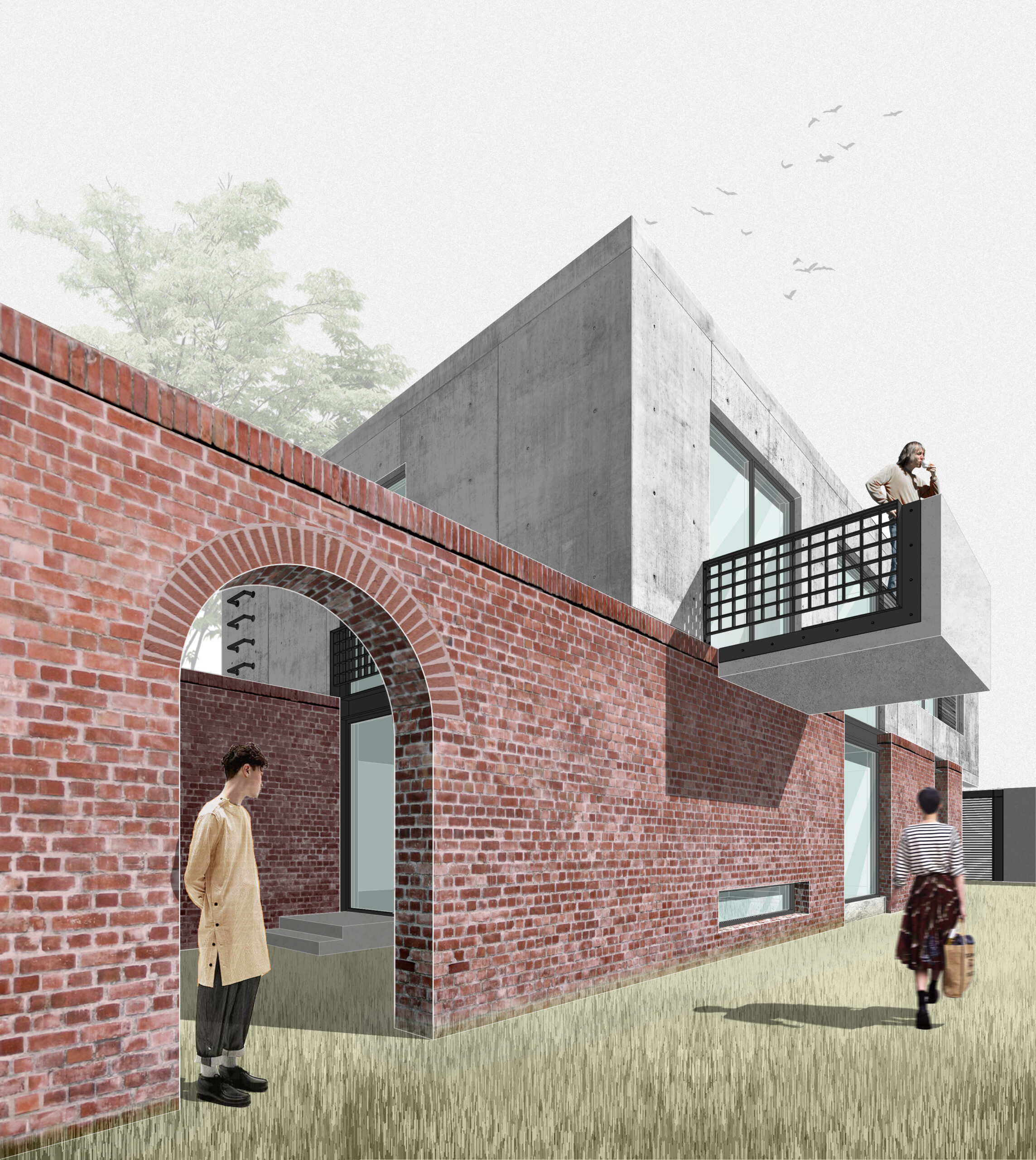 between the grounded warmth of handcrafted red brick and the airy,