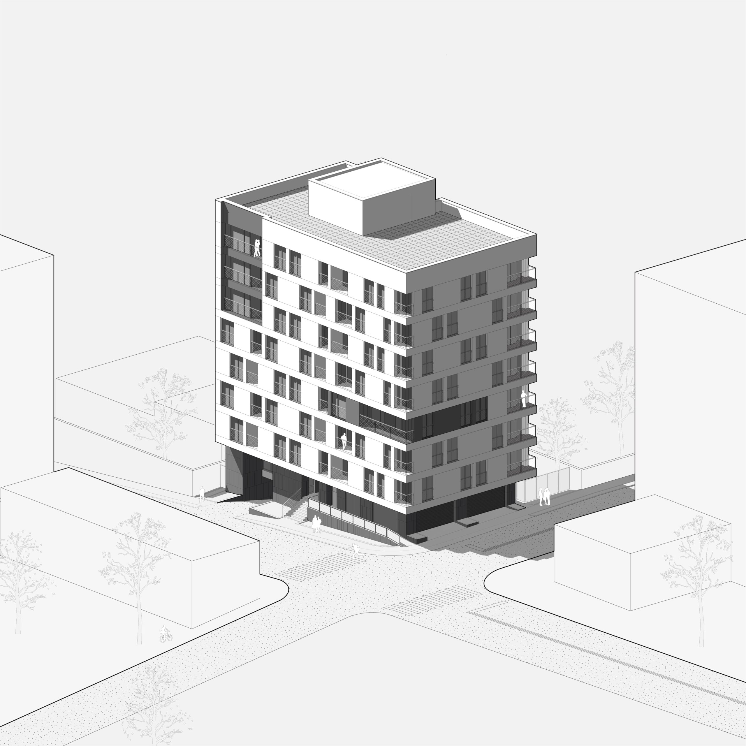 block typology with a striking 4,510 m2 volume defined by rhythm and