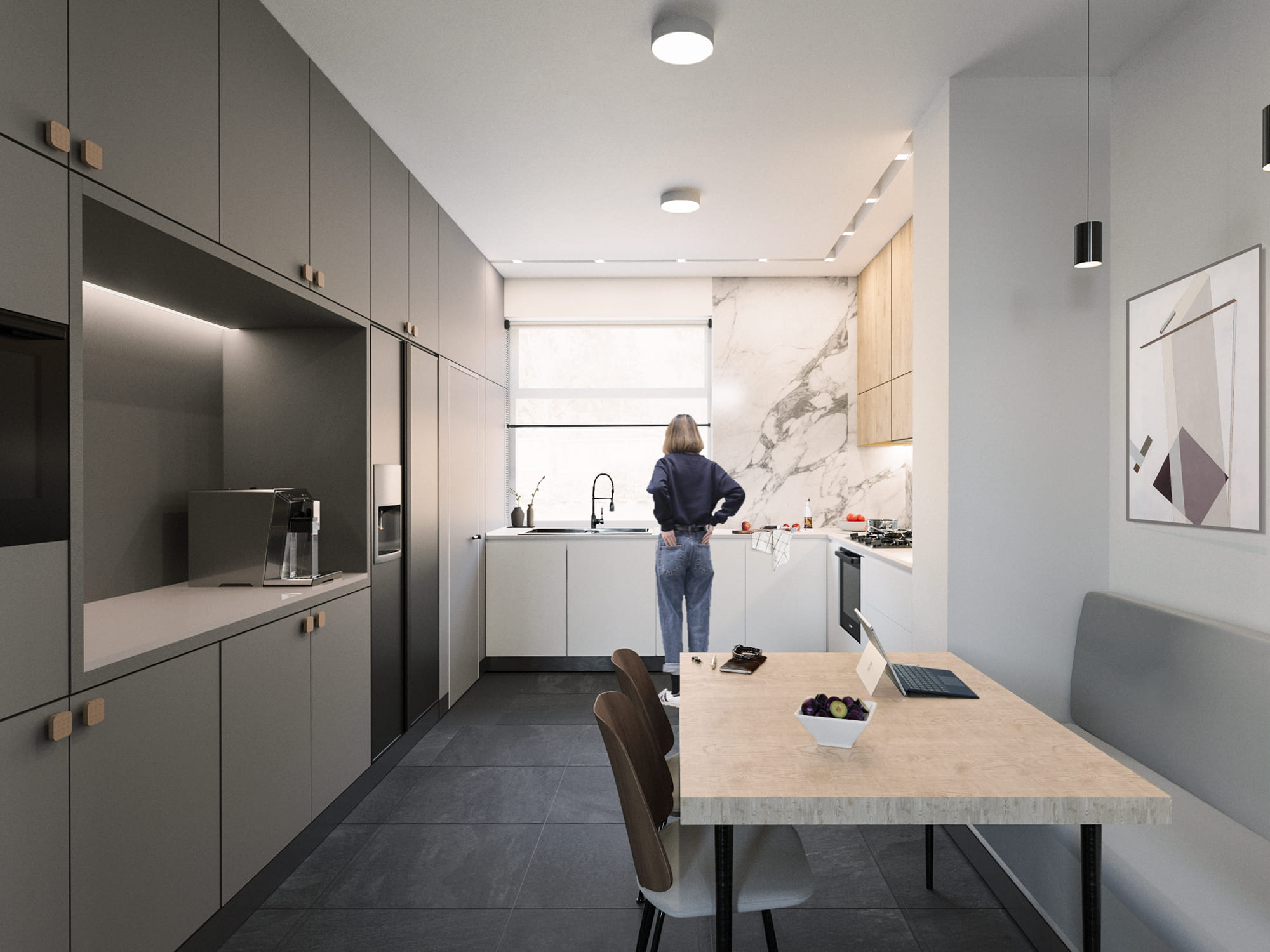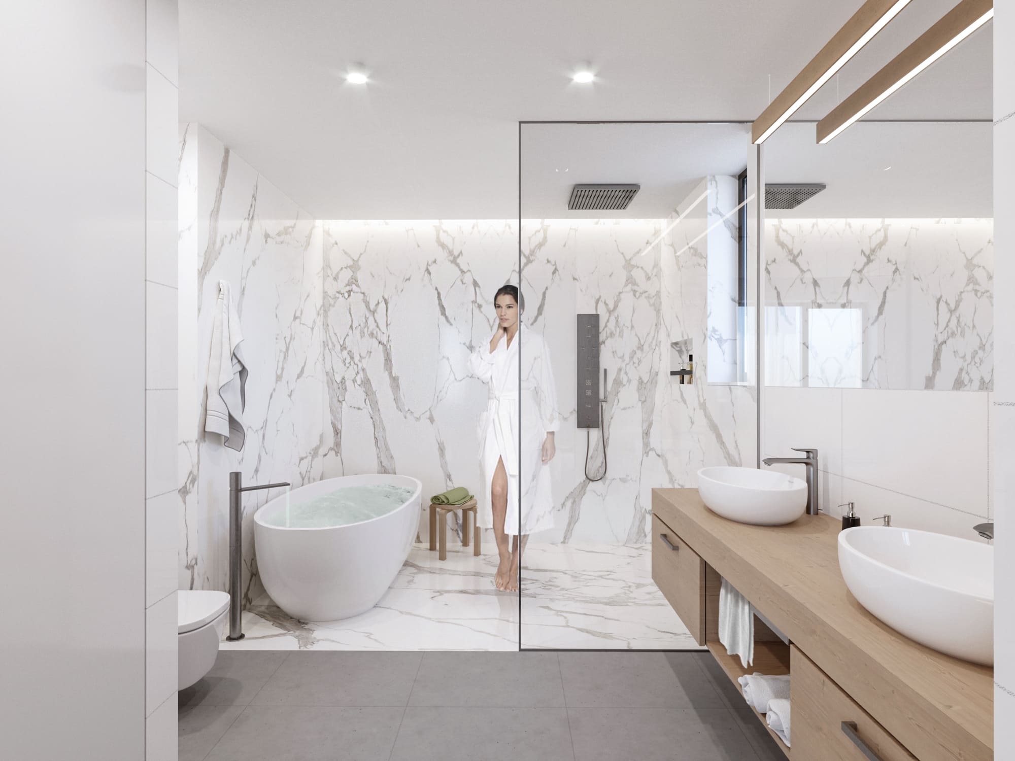 marble, and matte white creates a cohesive, light-filled atmosphere