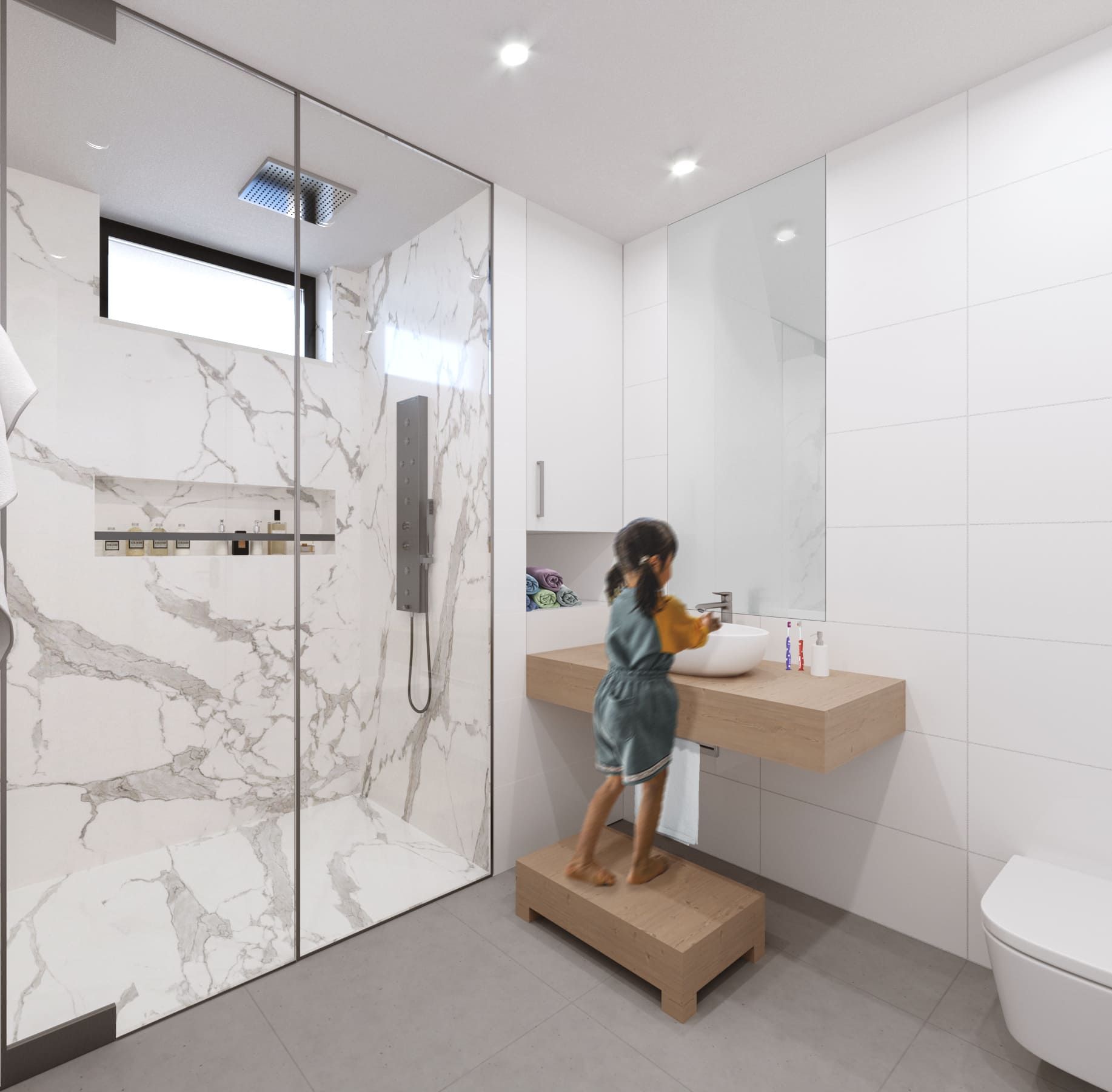glass en-suite partition and highly functional children’s rooms equipped